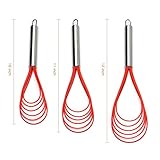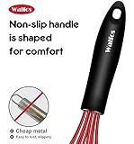 High performance durable safe walfos silicone kitchen whisks allows to withstand high heat resistant up to 480 Our tough for vigorous whipping and aerating while making your favorite foods 3 different sizes 85 inch 105 inch and 12 inch they will meet all your diverse cooking needs Ergonomically plastic handle provides you with a comfortable grip walfos whisk has a 5 inch long handle unique arc design make it fit comfortably in the palm of your hand The handle wont slip even in wet hands