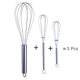 EHZ - Ergonomically stainless steel handlestainless steel handle with ergonomically designed that make it durable better grip and use comfortable The wire whisks with a storage ring and the stainless steel ends with hanging holes that all can easy to storage on any hook Multifunctional 3piece whisk setthe whisk set come in 3 sizes 81012 three sizes will meet to all your different cooking needs The 8 balloon whisk can be used for blending salad dressing or vinaigrette the 10 balloon whisk can be used for beating eggs and the 12 balloon whisk can be used for mixing pancake batter