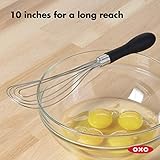 OXO - Innovative handle shape and soft comfortable grip to absorb pressure Polished stainless steel wires and narrow shape are perfect for whisking in a small bowl or container Dishwasher safe