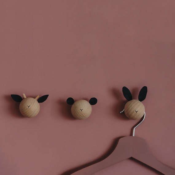 Woodland nursery decor animal wall hooks set of three, Coat hooks for kids, children Wall pegs, nursery wall hooks, animal wall decor W by loopdesignstudio